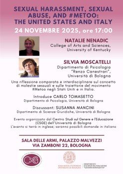 All’indomani della ratifica italiana della Convenzione di Istanbul (2013), le Linee di indirizzo per l’accoglienza e la cura di donne vittime di violenza della Regione Emilia-Romagna hanno definito la violenza maschile contro le donne nelle relazioni di intimità un problema culturale e sociale da contrastare attraverso l’impegno di tutti i soggetti coinvolti nella «presa in carico», sia delle vittime, sia degli aggressori. Successivamente, i Piani nazionali antiviolenza (2015 e 2017) hanno ribadito l’importanza della responsabilizzazione degli autori, invitando a promuovere percorsi di aiuto rivolti agli uomini con l’obiettivo di interromperne i comportamenti violenti. In questo seminario, a partire dalla pubblicazione di un recente volume (La responsabilità della violenza. Un modello di intervento socioeducativo nel contrasto della violenza contro le donne, Lambertini, a cura di, Il Mulino, 2020) verrà discusso un innovativo modello di intervento socioeducativo che pone al centro del lavoro di contrasto il tema della responsabilità e della responsabilizzazione degli uomini. L'incontro è rivolto a ricercatori/ricercatrici in ambito accademico, ma anche a chi opera nell’ambito dei Servizi Sociali ed Educativi, nella formazione e ai policy makers.