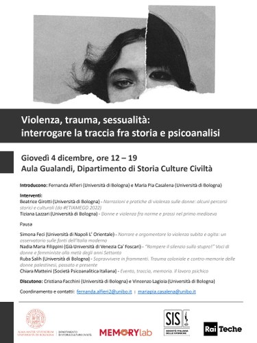 The seminar brings together historical research, anthropology, and psychoanalytic practice to address a crucial question that is not only relevant to the intersection of violence, sexuality, and gender relations, but also to the disciplines themselves, with their respective methodological and conceptual tools. How is it possible to investigate violence when it is so unsustainable that it is concealed, hidden, and removed in different ways by those who perpetrate it and those who suffer it? How can we investigate its indirect traces, undo the mechanisms of distortion and transformation of memory, and overcome silence?