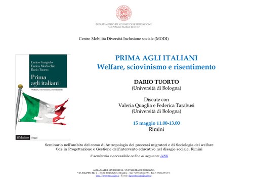 DARIO TUORTO (Università di Bologna) Discute con Valeria Quaglia e Federica Tarabusi (Università di Bologna)