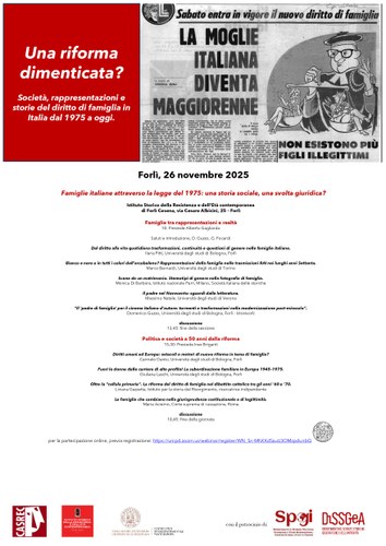 Il Centro di Ateneo per la Storia della Resistenza e dell’età contemporanea (Casrec), in collaborazione con l’Istituto storico della Resistenza e dell’età contemporanea di Forlì-Cesena e il Centro Studi Interdipartimentale Punto Europa, organizza un incontro dedicato al 50° anniversario della riforma del diritto di famiglia.